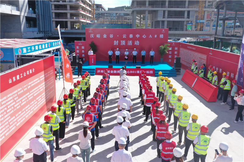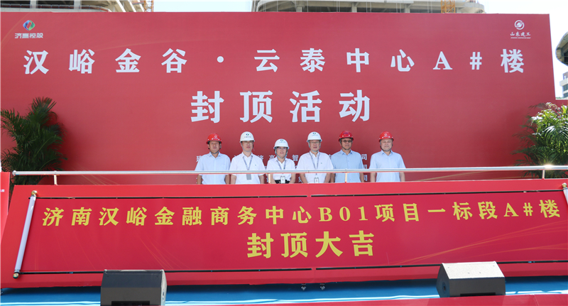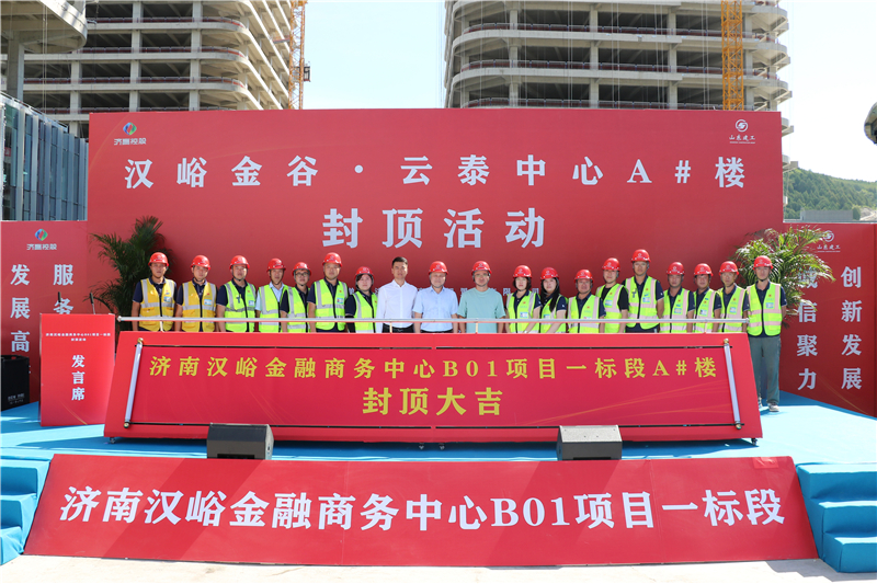 8月23日上午9時,集團承建的漢峪金谷·云泰中心A#樓喜封金頂。濟南高新智慧谷投資置業(yè)有限公司董事長兼總經理常艷麗;濟南高新智慧谷投資置業(yè)有限公司副總經理、濟南東禾置業(yè)有限公司總經理駱虎;濟南高新智慧谷投資置業(yè)有限公司投拓總監(jiān)費世俊;營特國際工程咨詢集團有限公司副總經理金永滿;山東建工集團副董事長師厚紀;山東建工集團副總經理、安全總監(jiān)蘇世凱等領導出席儀式,與項目建設者一同見證這激動人心的時刻。