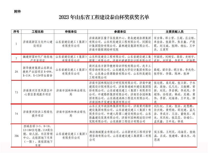 集團(tuán)承建參建的六項(xiàng)工程榮獲“泰山杯”稱號(hào)