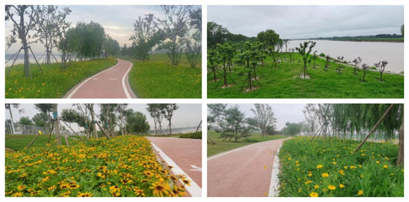 5.作為黃河流域另一個(gè)獲獎(jiǎng)項(xiàng)目,濟(jì)南黃河防洪工程綠化提升肩負(fù)著改善周邊地區(qū)生態(tài)環(huán)境、打好黃河生態(tài)治理攻堅(jiān)戰(zhàn)的重要任務(wù)。施工過(guò)程中,集團(tuán)整理綠化用地約42.77萬(wàn)平方米,更換種植土約6600立方米,栽植了白蠟、國(guó)槐、梓樹、金葉榆、黃金槐等喬木3600余株,處理完成園路廣場(chǎng)基礎(chǔ)近6000平方米。交付后該項(xiàng)目取得了良好的經(jīng)濟(jì)和社會(huì)效益。