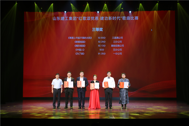 萬眾期待之中,活動第二階段——集團紅歌比賽決賽正式拉開大幕。預賽晉級的16支隊伍爭先拿出看家本領,演唱的《為了誰》《珊瑚頌》《我的祖國》《國家》《中國軍魂》《歌唱祖國》《向往》等膾炙人口的主旋律歌曲響徹會場,打動著每一位觀眾。他們不僅展示了過硬的歌唱實力、精巧的舞美編排和飽滿的精神狀態,更以富有感染力的歌聲抒發對黨和國家的無限深情,表達了堅定跟黨走的決心,向黨和國家獻上最誠摯的祝福,生動演繹著對集團成立45周年的喜悅之情。最終,集團機關合唱摘得桂冠;四分公司合唱、二直屬公司合唱獲二等獎;三直屬公司獨唱、三分公司合唱、基礎設施公司獨唱、五分公司獨唱、一分公司獨唱獲三等獎;安裝分公司合唱、二分公司合唱、二分公司獨唱、物資公司獨唱、四分公司獨唱、鋼結構公司獨唱、基礎設施公司合唱、五分公司合唱獲優秀獎。比賽在全員齊唱集團廠歌《新世紀的陽光》中閉幕。
