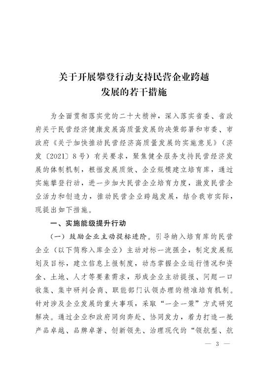關于開展攀登行動支持民營企業跨越發展的若干措施