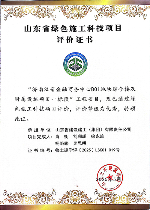 省綠色施工科技項目:濟南漢峪金融商務中心B01地塊綜合樓及附屬設施項目一標段